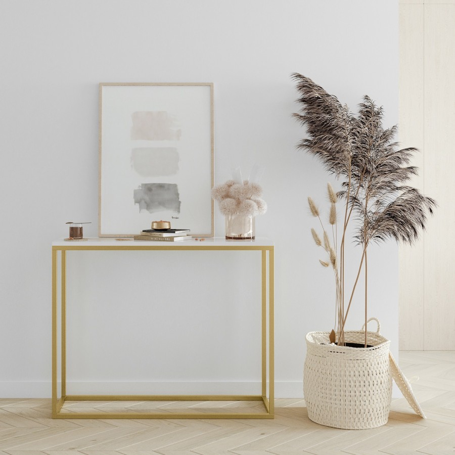 Konsola Industrialna Złota z Białym Blatem 100 cm – Elegancja i Luksus w Twoim Wnętrzu
