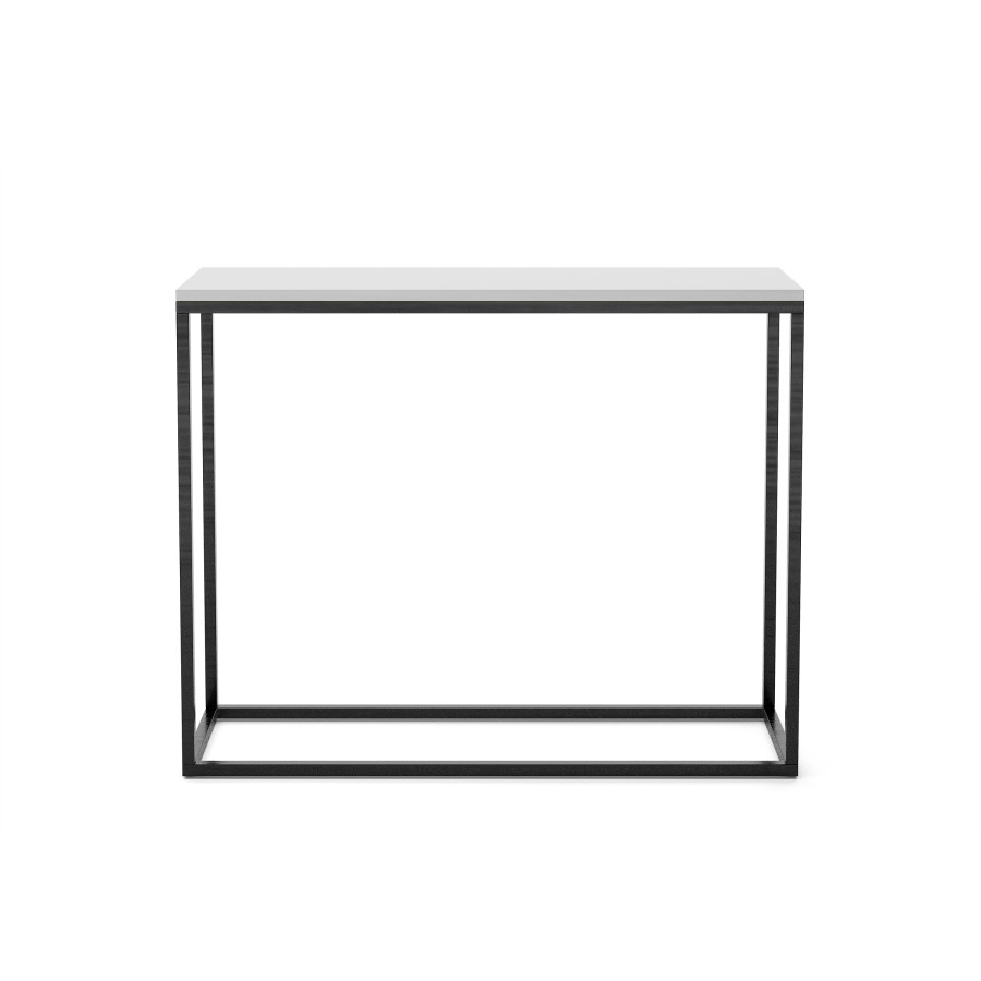 Konsola wyróżnia się prostym, ale efektownym wyglądem. Czarna stalowa konstrukcja w połączeniu z białym blatem o grubości 18mm tworzy harmonijną kompozycję, która będzie doskonale komponować się z różnymi dodatkami i kolorami w Twoim wnętrzu.