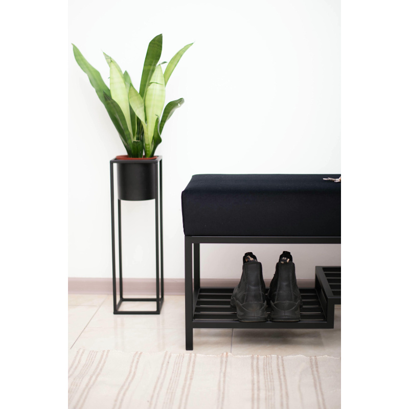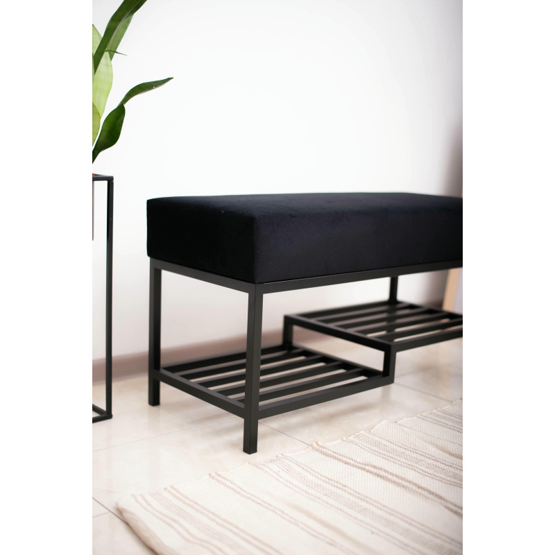 Czarne Siedzisko do przedpokoju 80cm, wykończenie czarny welur, czarny stelaż profil 2x2cm lakierowany proszkowo.