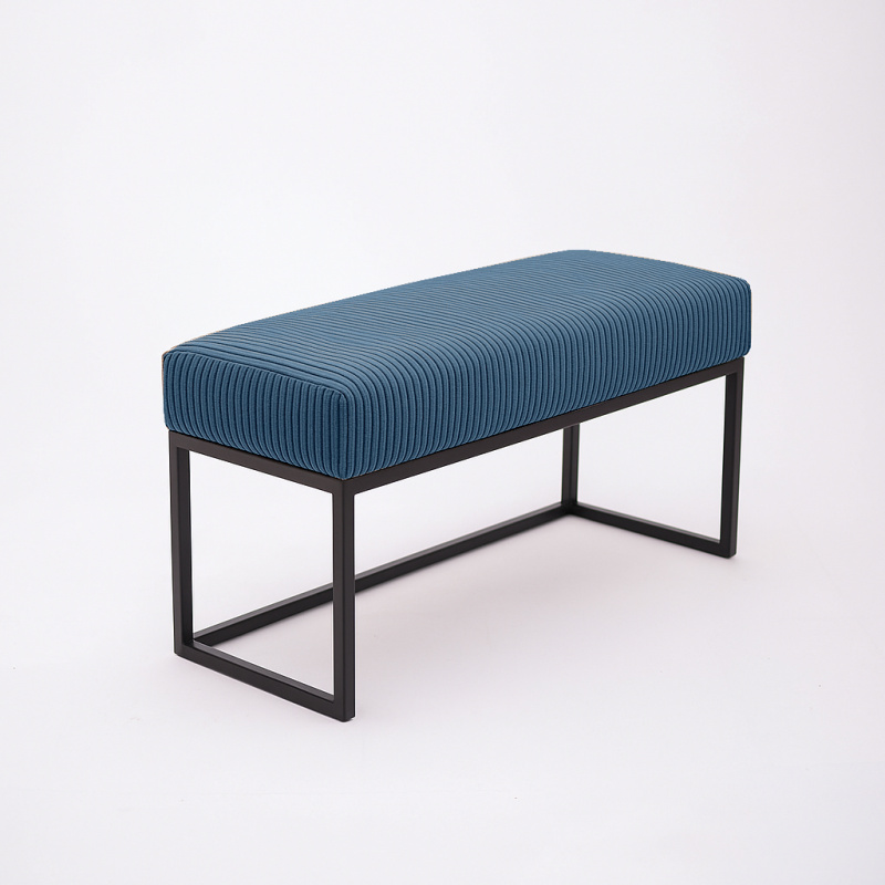 Granatowa ławka tapicerowana Bassic-S w wersji navy on black to mebel, który łączy nowoczesny design, komfort i solidność. Tapicerka w głębokim granacie (Poso 05) zestawiona z czarnym, metalowym stelażem tworzy elegancki kontrast, który podkreśli charakter każdego wnętrza.