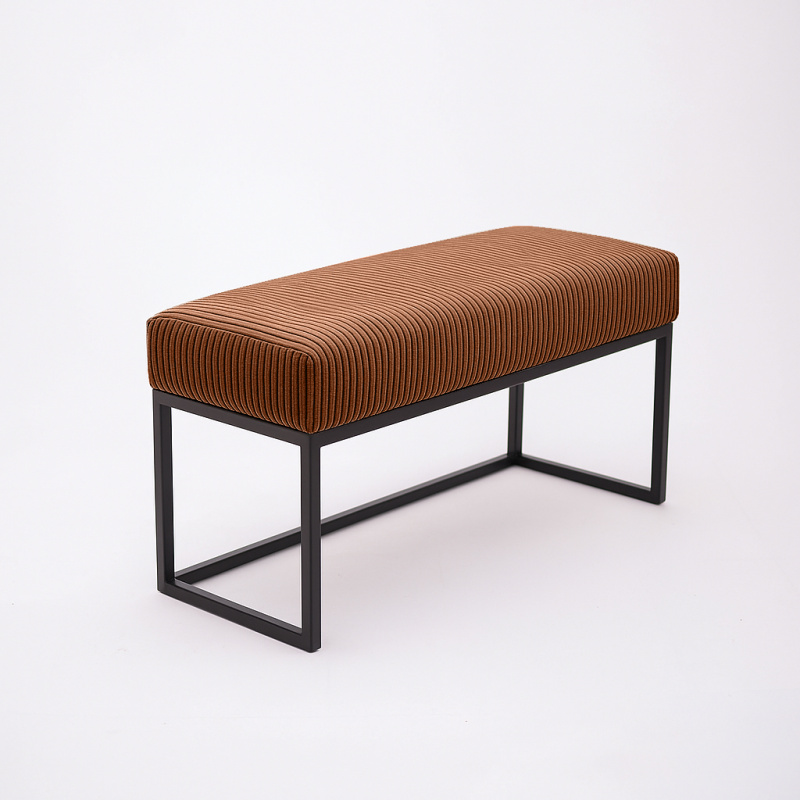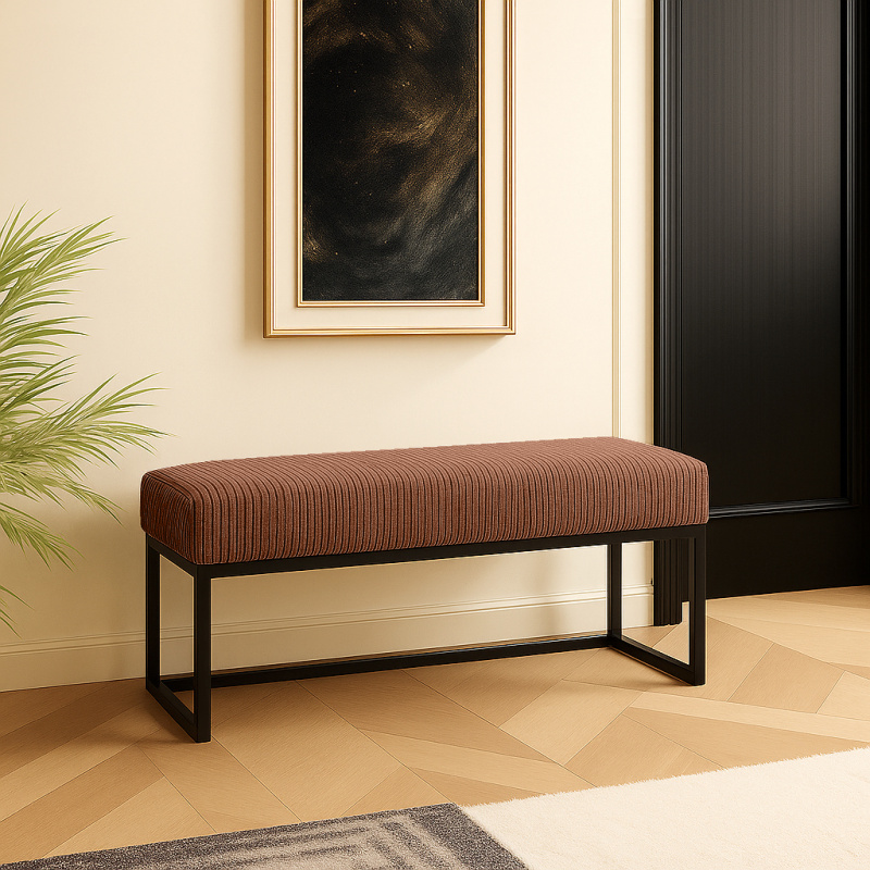Ruda ławka tapicerowana Bassic-S Rust on Black – sztruksowe siedzisko 80 cm w ciepłym odcieniu na czarnym stelażu. Komfort, styl i trwałość w jednym.