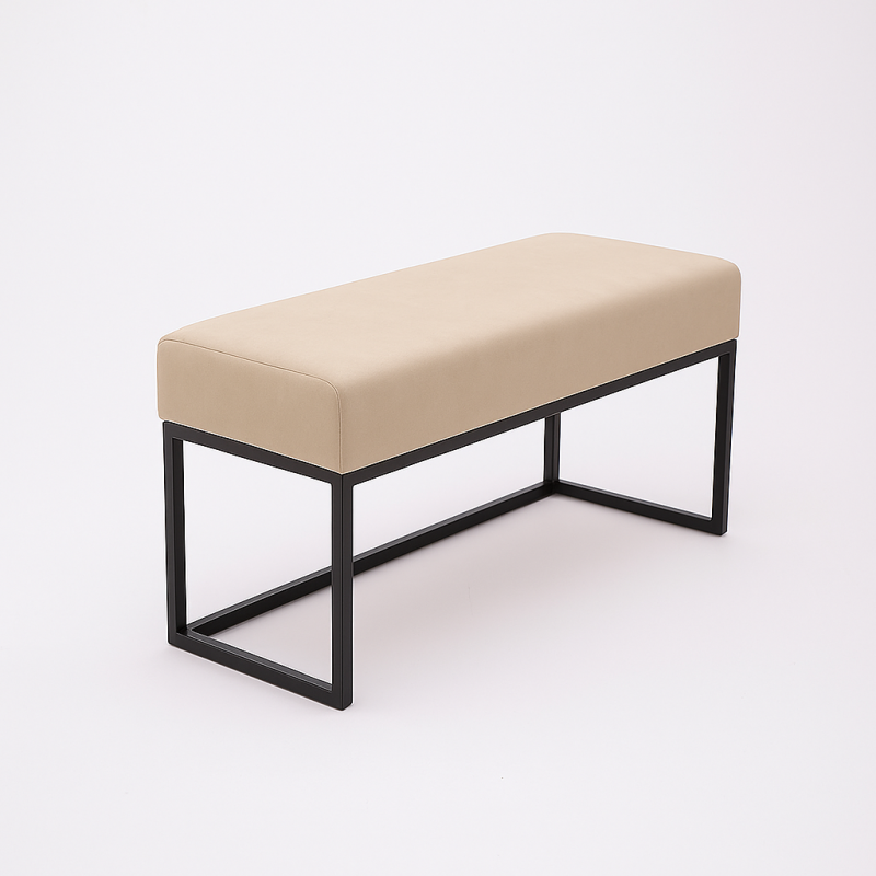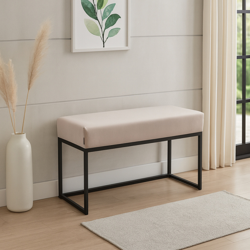 Beżowa ławka tapicerowana Bassic-S Matt Beige – siedzisko z matowego welwetu 80 cm na czarnym stelażu. Komfort, lekkość i elegancja w naturalnym wydaniu.
