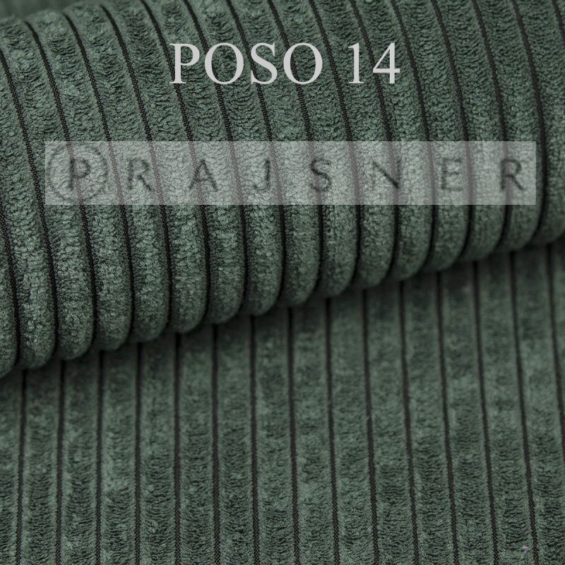POSO 14 to miękki, przyjemny w dotyku sztruks o wyraźnej strukturze. Kolor butelkowej zieleni pięknie komponuje się z drewnem, złotem, czernią, beżami i naturalnymi dodatkami, nadając wnętrzu elegancji i przytulności.