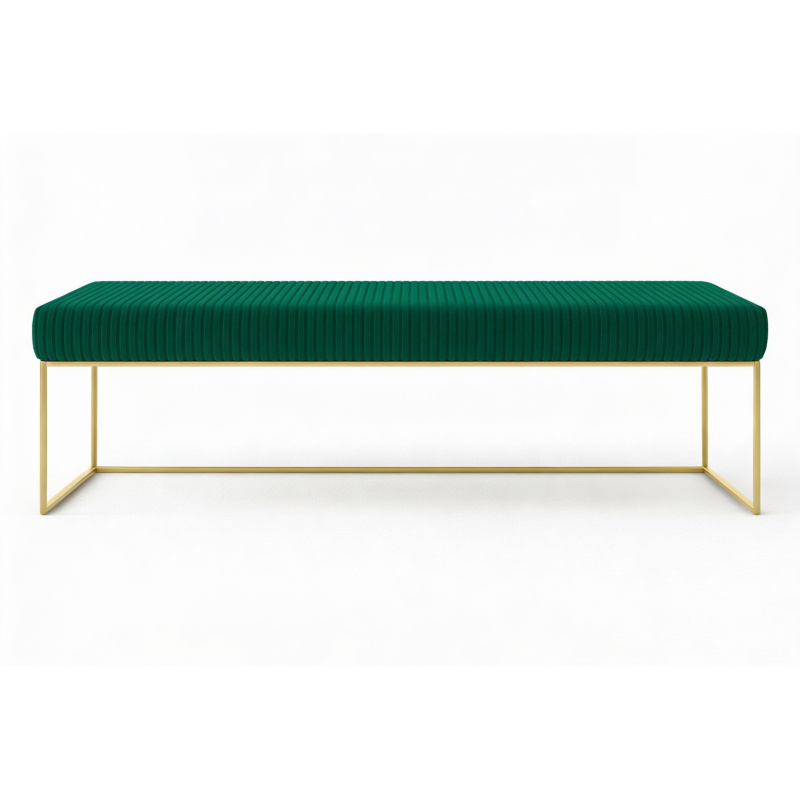 Wybierz pufę ławkę Style-S 80 cm w butelkowej zieleni POSO 14 ze złotym stelażem i wprowadź do swojego wnętrza wyrazisty, a jednocześnie ponadczasowy element wyposażenia.