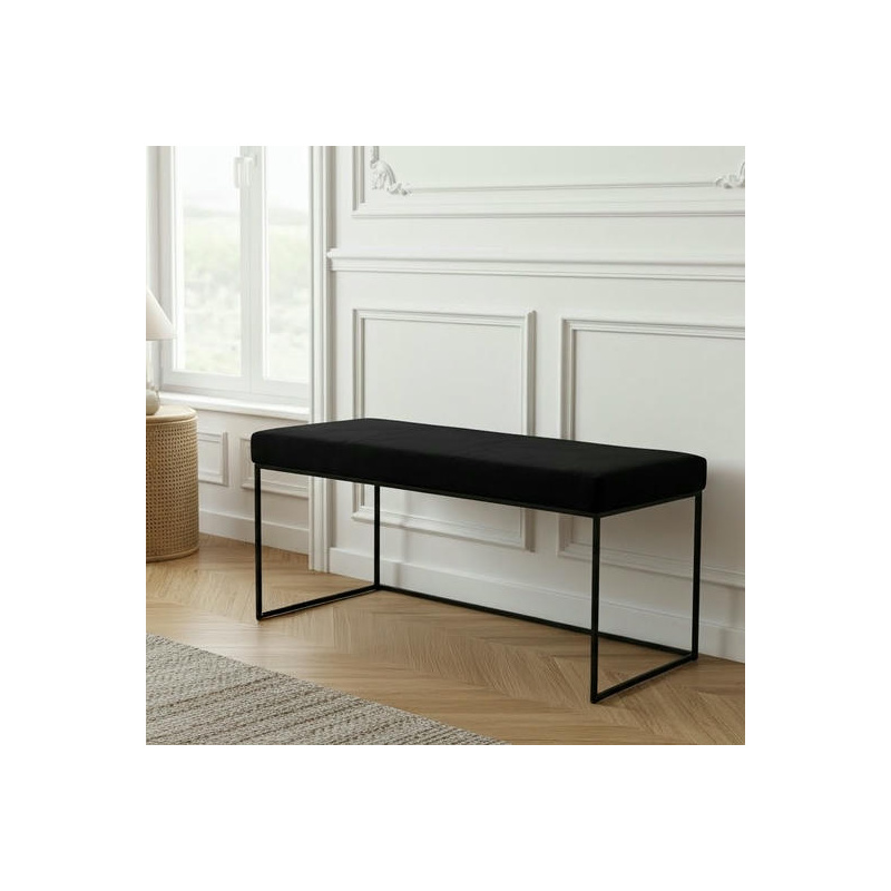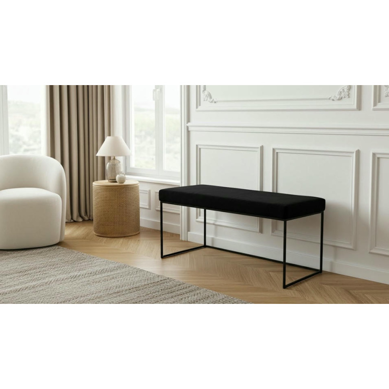 Pufa ławka tapicerowana Style-S 80 cm – czarny Matt Velvet 99, czarny stelaż
