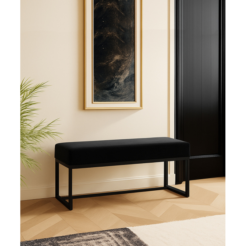 Nowoczesna ławka Classic z czarnym stelażem i tapicerowanym siedziskiem. Styl industrialny, solidna metalowa konstrukcja, komfort i elegancja w Twoim wnętrzu.