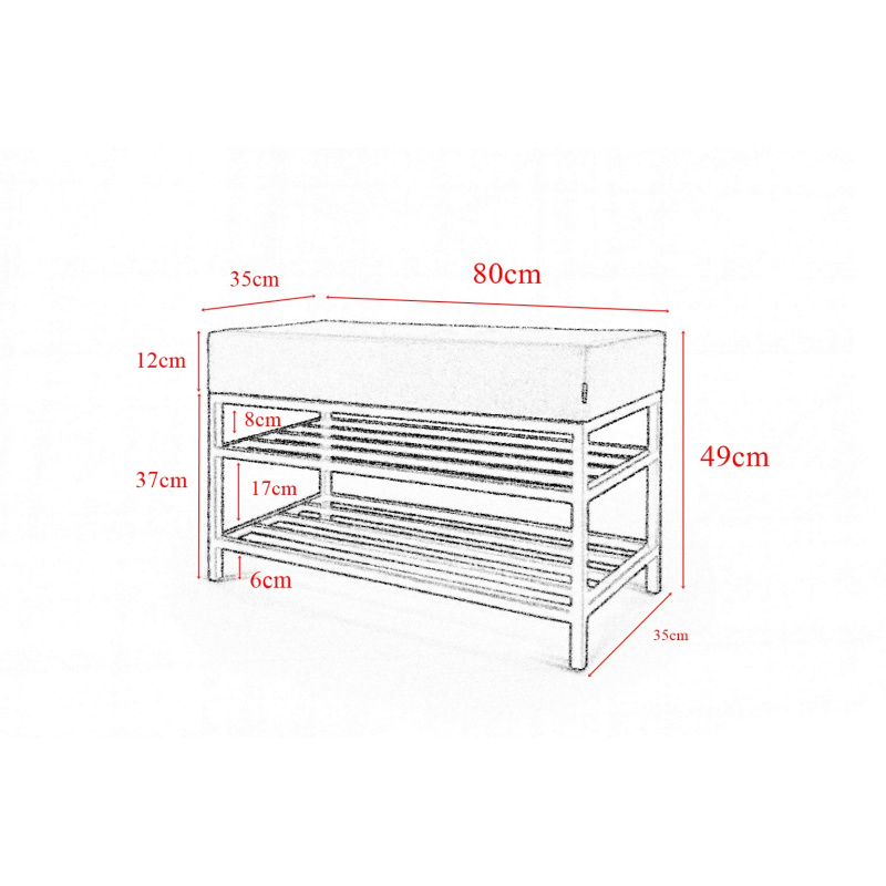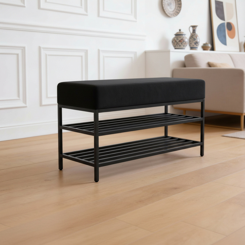 Ławka pufa tapicerowana VIP 80 cm – czarny Matt Velvet 99 z półkami na buty
