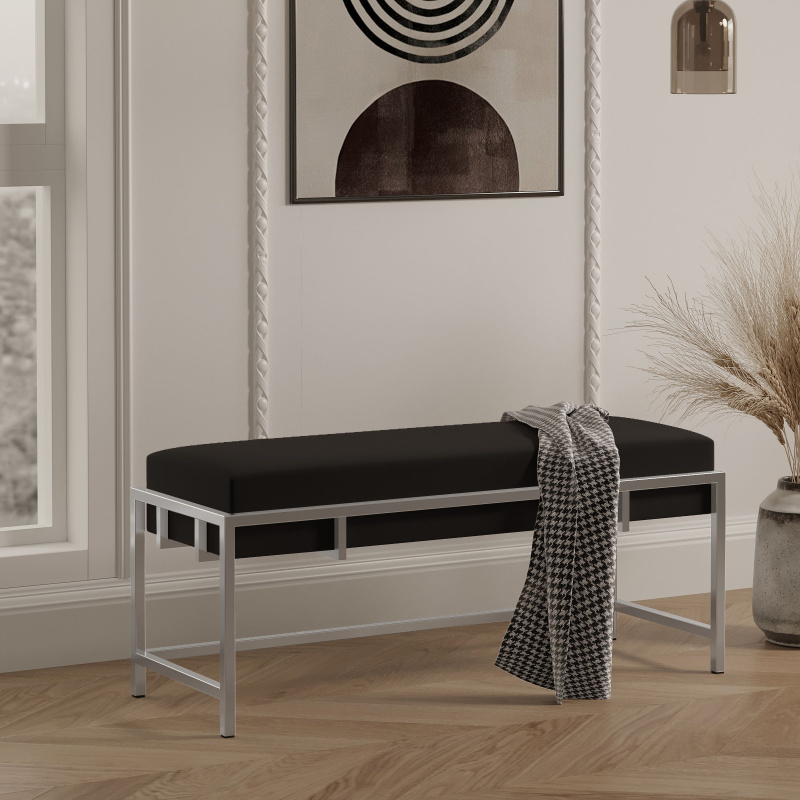 Chromowana ławka GLAM o długości 100 cm to elegancki mebel w stylu glamour, który łączy nowoczesny design z funkcjonalnością. Wykonana z najwyższej jakości chromowanej stali, wyróżnia się trwałością oraz efektownym połyskiem, który nadaje wnętrzom luksusowego charakteru. Idealnie pasuje do salonu, sypialni lub przedpokoju, podkreślając wyjątkowy styl pomieszczenia.