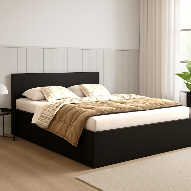 Klasyka, która zachwyca – Czarne Łóżko 120x200 z pojemnikiem na pościel