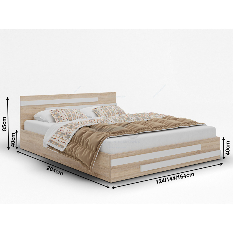 Minimalistyczne łóżko 140x200 z pojemnikiem – Dąb Sonoma / Białe akcenty