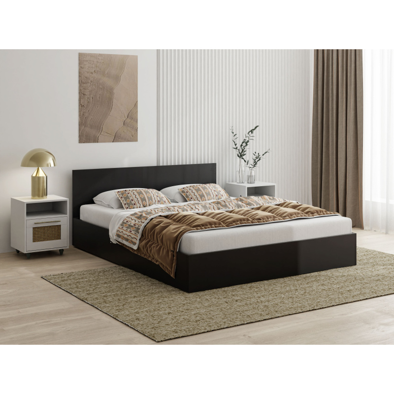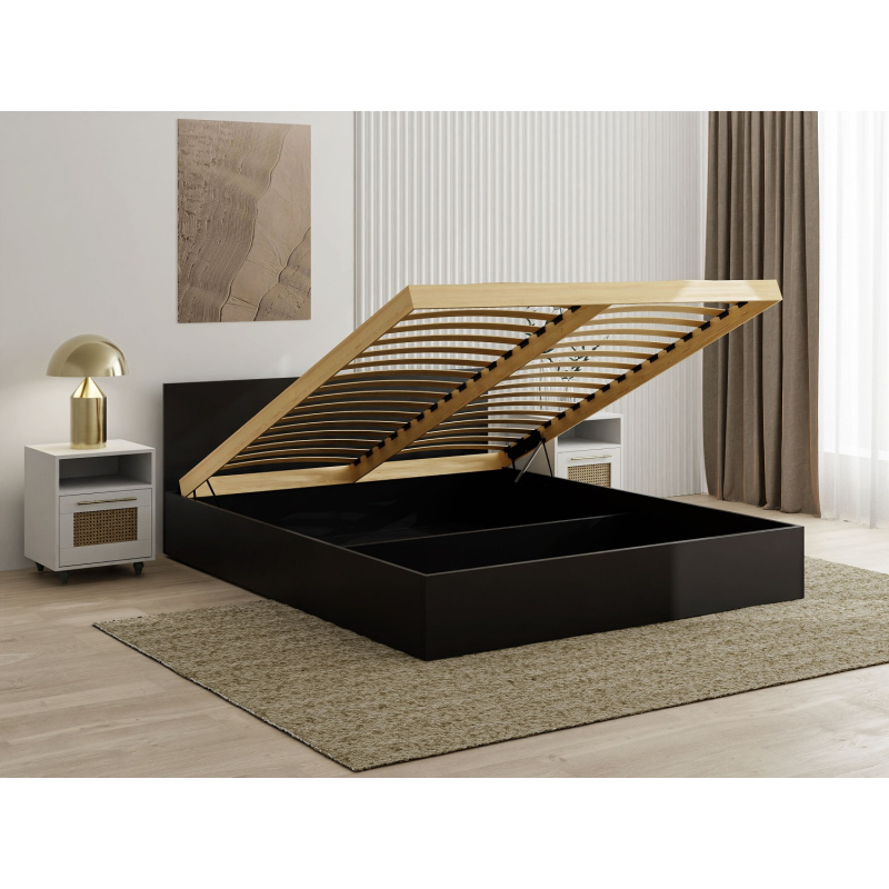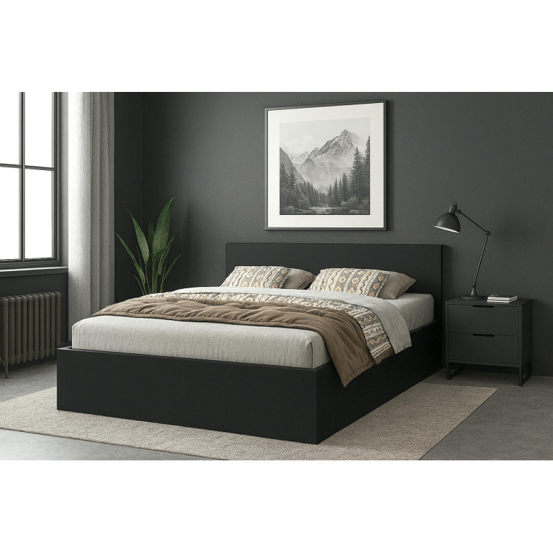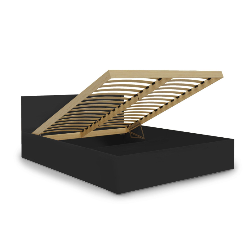 Czarne Łóżko 140x200 Klasyczne z pojemnikiem Avi
