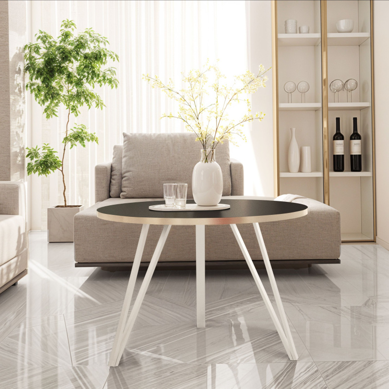 Czarny Okrągły Stolik Kawowy – Złote Obrzeże