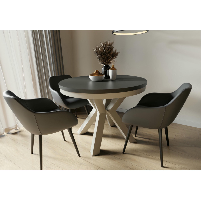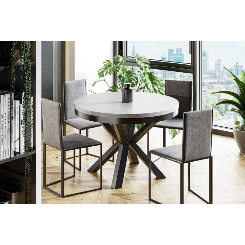 Minimalistyczny design stołu VIKINGopiera się na solidnej konstrukcji, która zachwyca prostotą i elegancją. Okrągły blat z wysokogatunkowej płyty laminowanej o grubości 36 mm, pokrytej niezwykle wytrzymałą okleiną PCV (2 mm), zapewnia odporność na uszkodzenia mechaniczne i łatwość w utrzymaniu czystości. Stół jest dostępny w wielu wybarwieniach, zarówno klasycznych, jak i nowoczesnych, co pozwala na idealne dopasowanie do indywidualnego charakteru wnęrza.