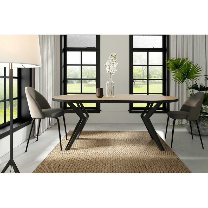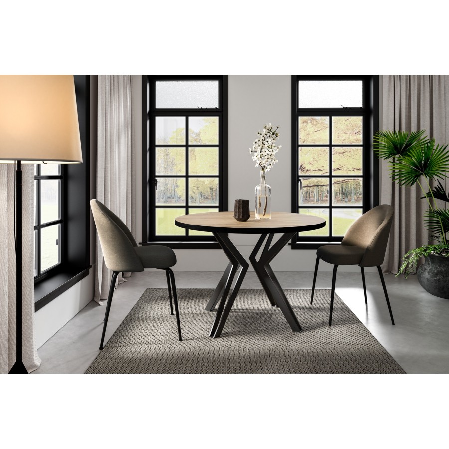 Stół DIRAN to okrągły, rozkładany stół w stylu industrialnym – solidny, funkcjonalny i stylowy. Idealny do kuchni lub salonu, dostępny w wielu dekorach i wariantach kolorystycznych.