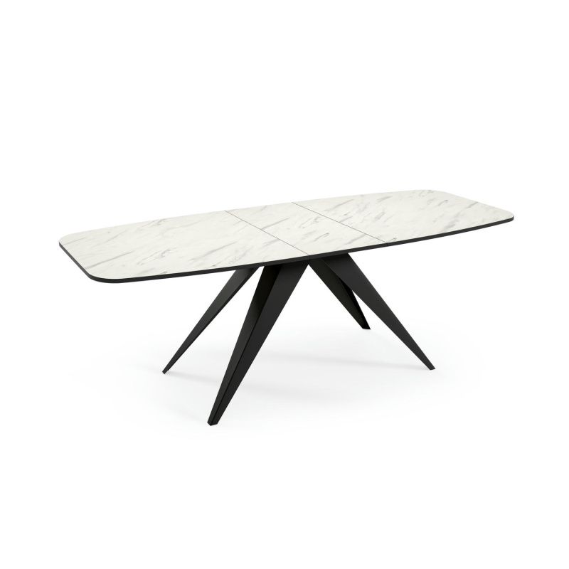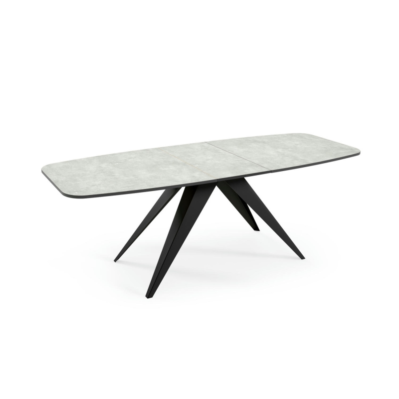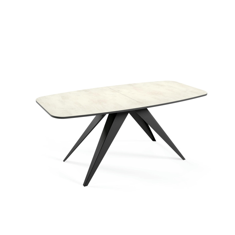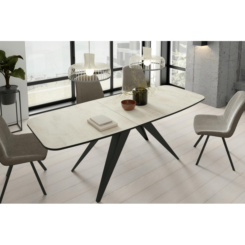 Stół ROOFE180  – solidny i elegancki, stworzony do większych wnętrz. Rozkładany, z metalowym stelażem i różnorodnymi dekorami blatu.