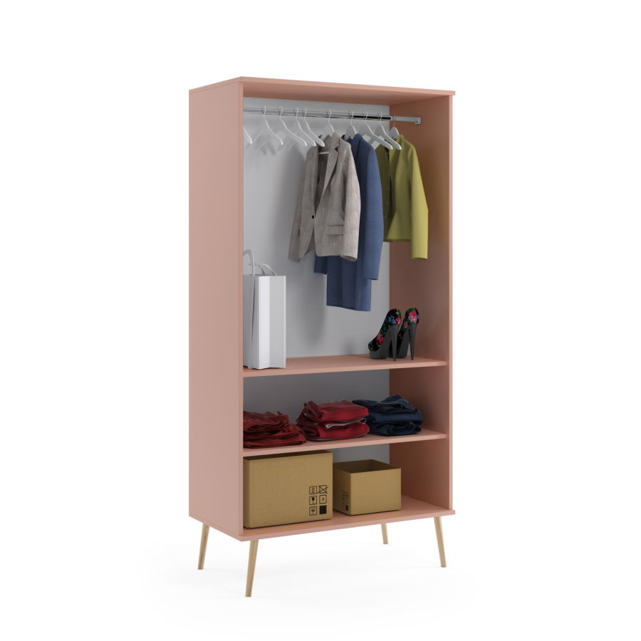 Mel Różowa Szafa w Stylu Boho, Głęboka dwie Póki, Drążek, Nogi Drewniane