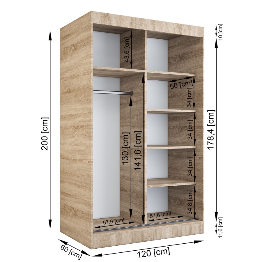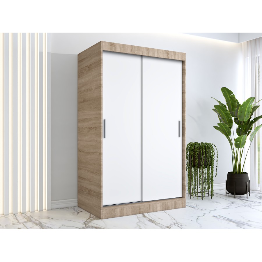 Szafa przesuwna 120x200cm w kolorze dąb sonoma korpus front biały, zgrabna szafa idealna do przedpokoju, pokoju młodzieżowego lub małego salonu.