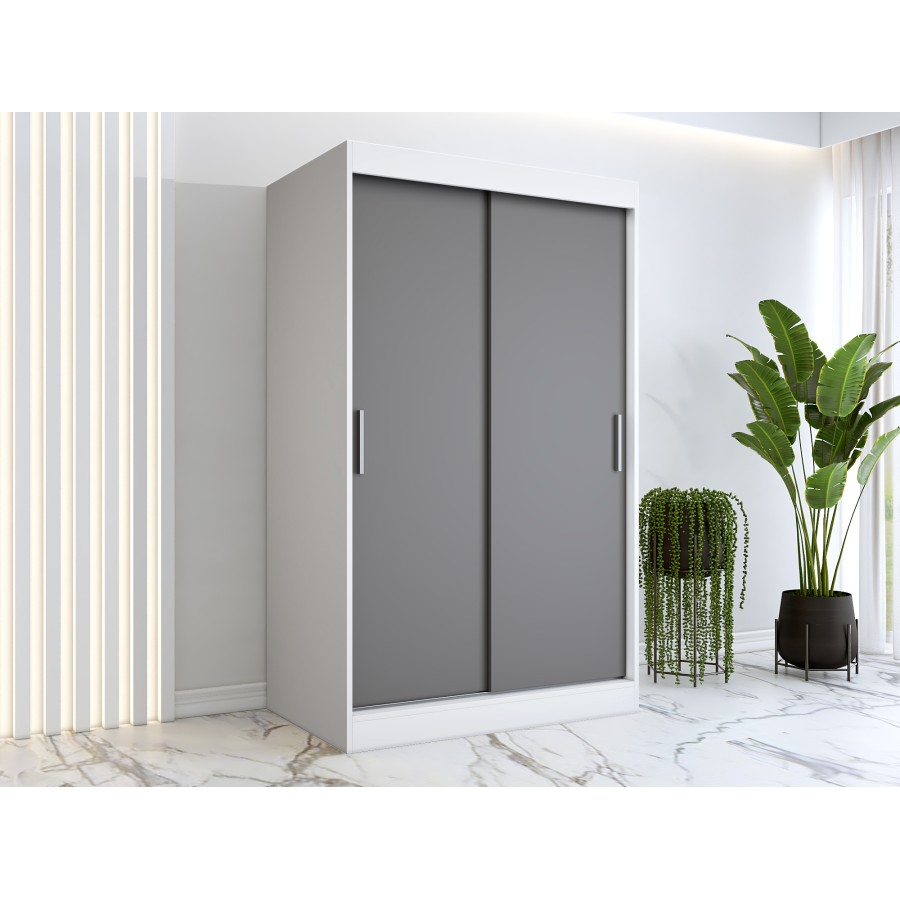 Szafa przesuwna biała/antracyt 120x200cm, zgrabna szafa idealna do przedpokoju, pokoju młodzieżowego lub małego salonu.