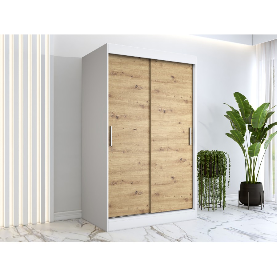 Szafa przesuwna biała/artisan 120x200cm, zgrabna szafa idealna do przedpokoju, pokoju młodzieżowego lub małego salonu.