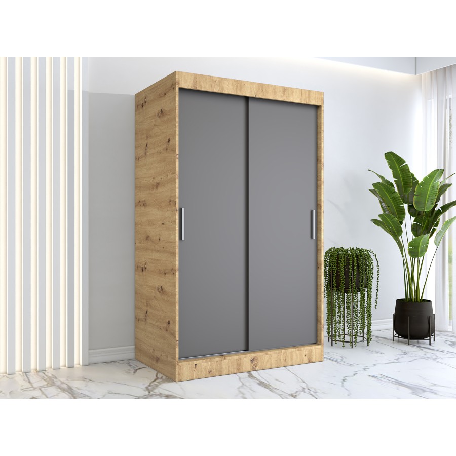 Szafa przesuwna Dąb Artisan, Antracyt 120x200cm, zgrabna szafa idealna do przedpokoju, pokoju młodzieżowego lub małego salonu.