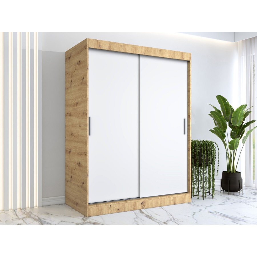 Szafa Przesuwna 180x200cm Dąb Artisan, Biel do przedpokoju, salonu, sypialni