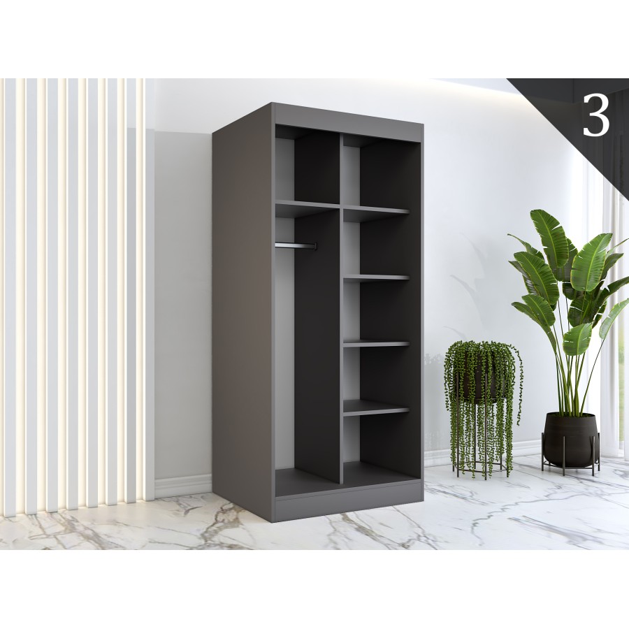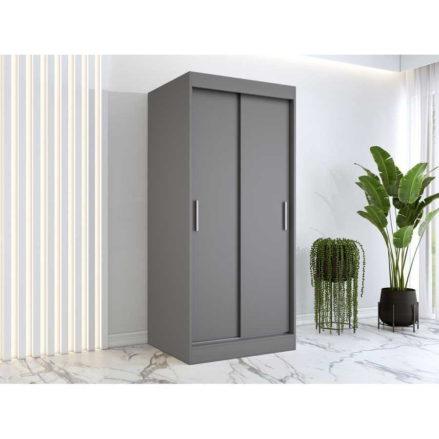 Szafa przesuwna Antracyt 90x200cm, zgrabna szafa idealna do przedpokoju, pokoju młodzieżowego lub małego salonu.
