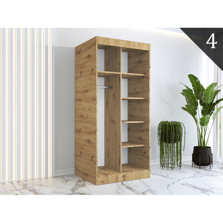 - W cenie: 5 półek oraz 2 drążki ( elementy potrzebne do obu konfiguracji wnętrza)