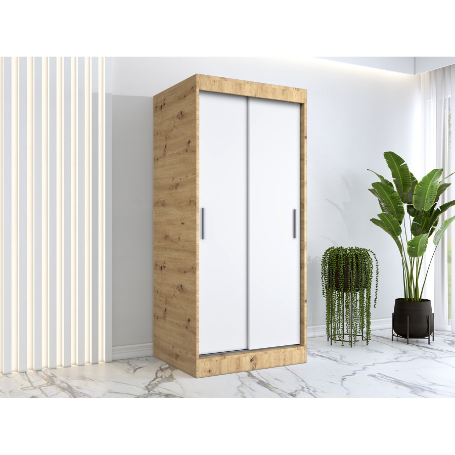 Szafa przesuwna 90x200cm korpus artisan fronty białe, zgrabna szafa idealna do przedpokoju, pokoju młodzieżowego lub małego salonu.