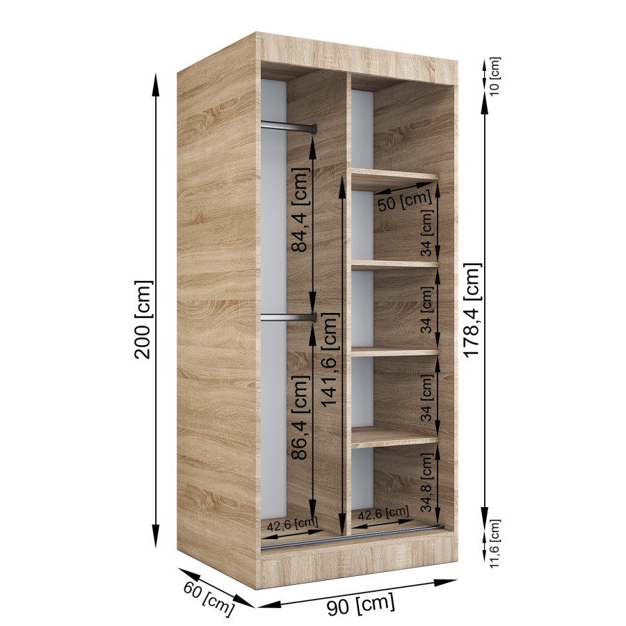 Szafa Przesuwna 90x200 dąb sonoma wymiary lato/zima