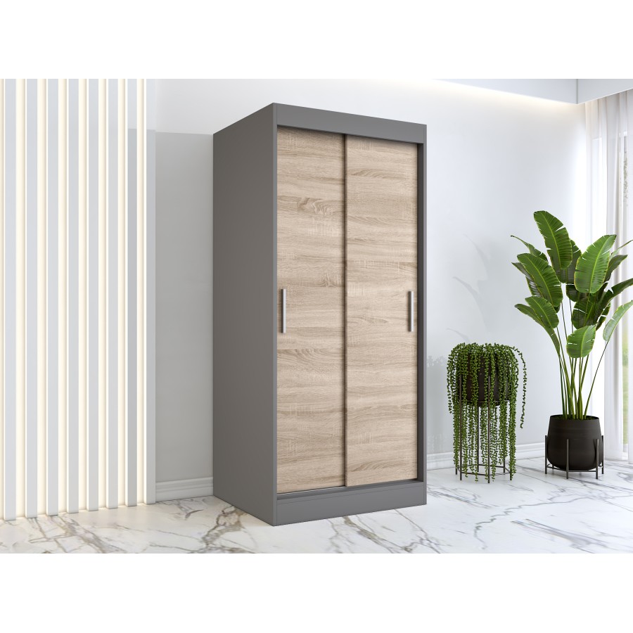 Szafa przesuwna 90x200cm korpus antracyt fronty sonoma, zgrabna szafa idealna do przedpokoju, pokoju młodzieżowego lub małego salonu.