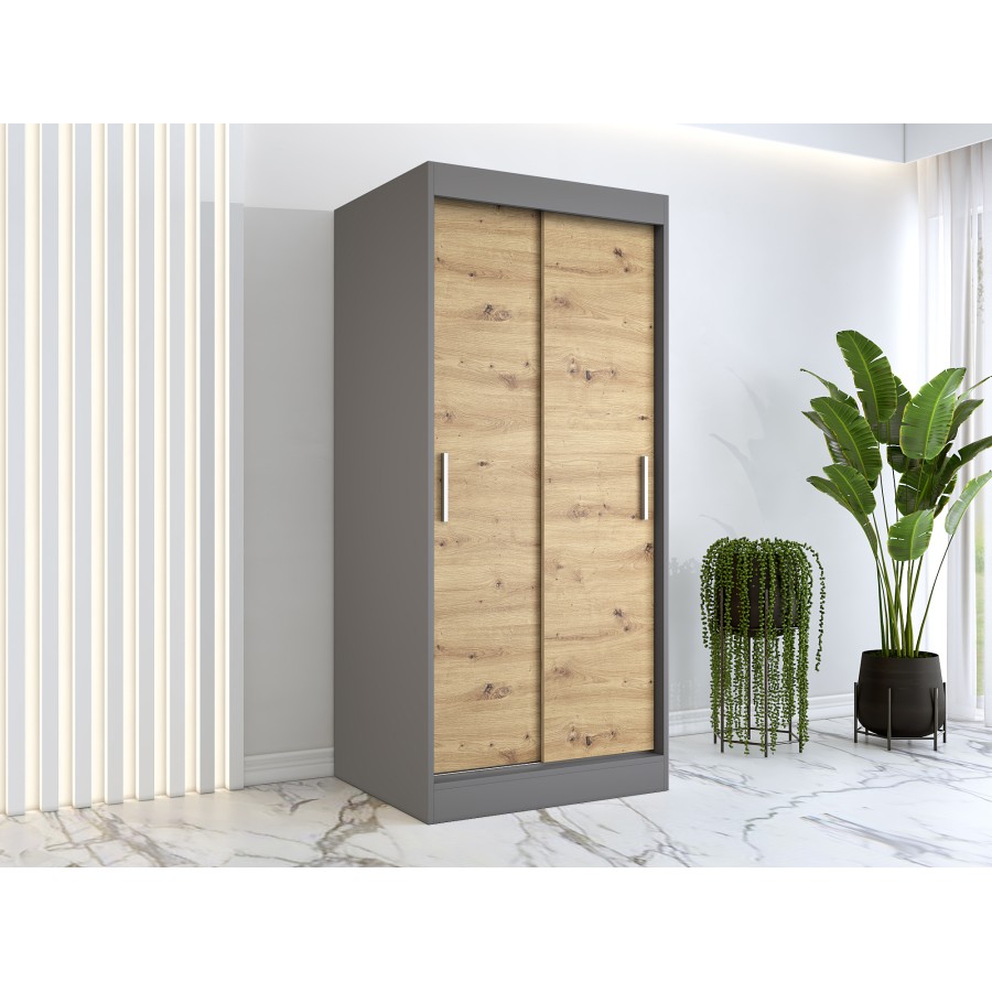 Szafa przesuwna Dąb Artisan 90x200cm fronty antracyt, zgrabna szafa idealna do przedpokoju, pokoju młodzieżowego lub małego salonu.