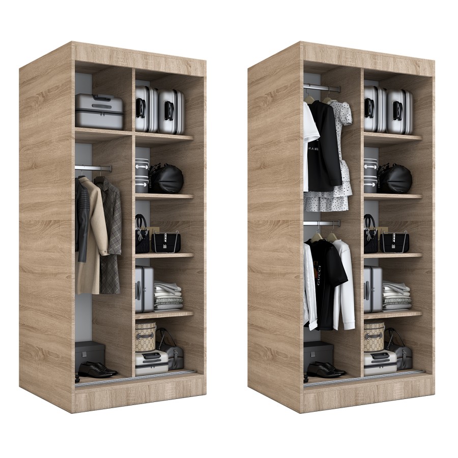 - W cenie: 5 półek oraz 2 drążki ( elementy potrzebne do obu konfiguracji wnętrza)