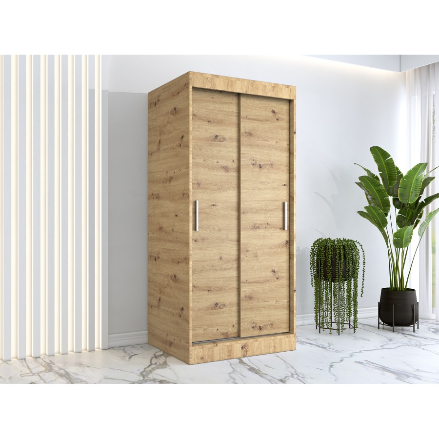 Szafa przesuwna Dąb Artisan 90x200cm, zgrabna szafa idealna do przedpokoju, pokoju młodzieżowego lub małego salonu.